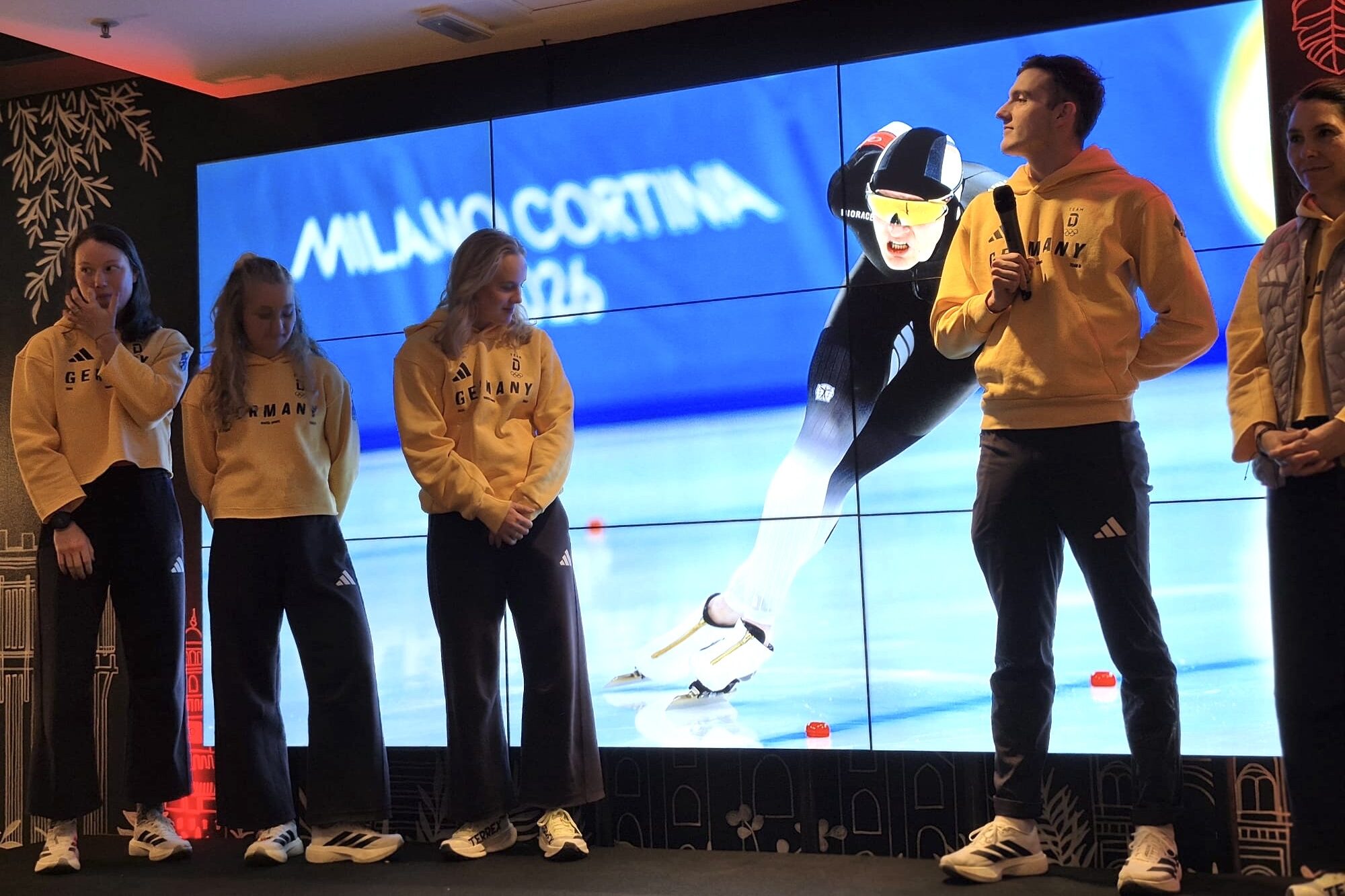 Neben der Senatorin zählten auch Susanne Welter (Generalkonsulin der Bundesrepublik Deutschland in Mailand), Eisschnelllauf-Bundestrainer Alexis Contin, DESG-Sportdirektorin Nadine Seidenglanz, DEU-Sportdirektor Jens ter Laak und Thomas Bothstede (Geschäftsführer der Eisbären Berlin) zu den Gästen.