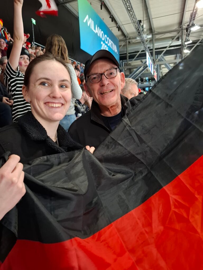 Foto: v.l. Sofie Adeberg und Frank Weidner beim Eisschnelllauf-Wettkampf in Mailand