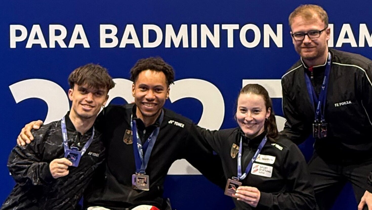 Mit beeindruckender Dominanz krönte sich Rick Cornell Hellman (Foto 2 v.l.) in Istanbul (Türkei) erneut zum Para Badminton-Europameister. In der Rollstuhl-Startklasse WH2 beherrschte der Berliner das gesamte Turnier und blieb bis zum Finale ohne Satzverlust. Auch dort ließ er dem Schweizer Luca Olgiati beim 21:9, 21:12 keine Chance und verteidigte erfolgreich seinen Europameistertitel. Neben Gold im Einzel sicherte sich der Paralympics-Teilnehmer zudem Bronze im internationalen Doppel.